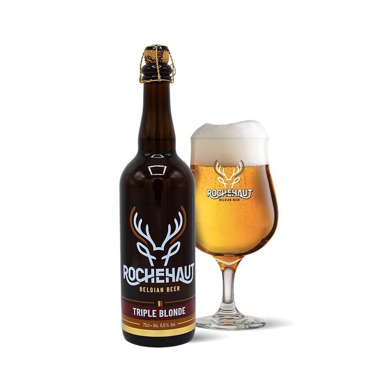 La Rochehaut Triple Blonde è una birra belga prodotta dalla Brasserie de Rochehaut, situata nelle Ardenne belghe Questa Tripel presenta una gradazione alcolica dell 8,5% vol È realizzata con tre cereali: malto d orzo chiaro, avena e frumento, senza aggiunta di zucchero Il malto d orzo conferisce un intenso colore giallo paglierino, mentre l avena e il frumento donano una consistenza setosa e una schiuma cremosa All olfatto, emergono note di malto e freschezza, con sentori di coriandolo e scorza d arancia che aggiungono una delicata freschezza agrumata Al palato, offre un equilibrio tra dolcezza maltata e una leggera amarezza, con un corpo pieno e una sensazione morbida Si consiglia di servirla a una temperatura di 8-12°C in un calice a tulipano per apprezzarne appieno gli aromi e i sapori complessi Questa birra si abbina bene con formaggi stagionati, piatti a base di pesce affumicato e carni bianche.