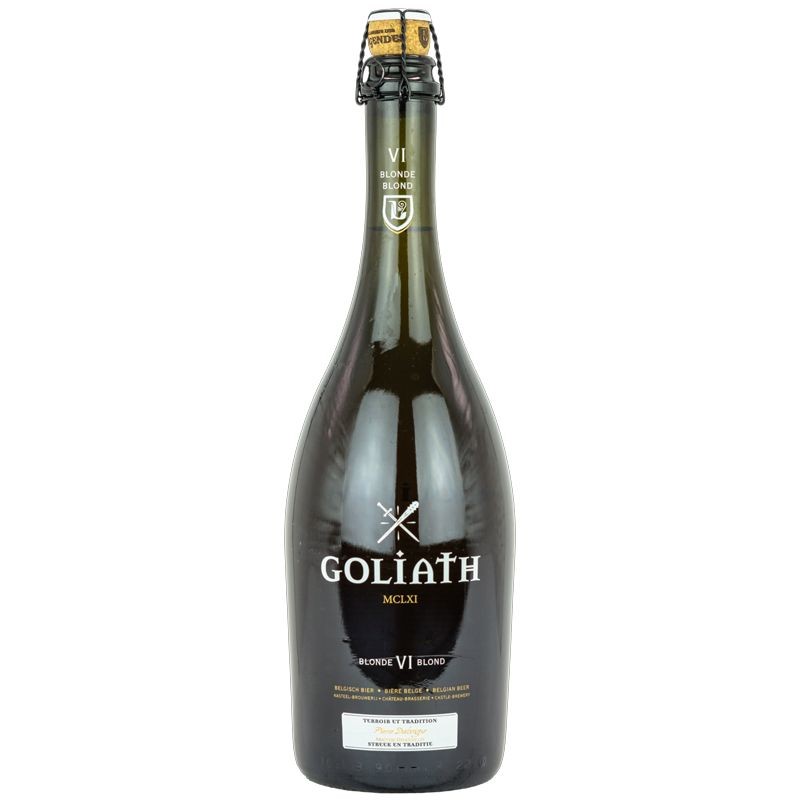 Goliath Blonde è una Belgian Strong Blond prodotta nella Brasserie des Légendes, birrificio che unisce tradizione agricola e storia fiamminga Dorata brillante, limpida, con schiuma compatta, offre profumi intensi di cereali dorati, miele, pera, banana delicata e spezie del lievito belga Il corpo è pieno ma scorrevole, la carbonazione fine sostiene la bevibilità e l alcol è perfettamente integrato Il finale è secco, leggermente erbaceo e molto pulito Una strong blond equilibrata, potente e raffinata allo stesso tempo.