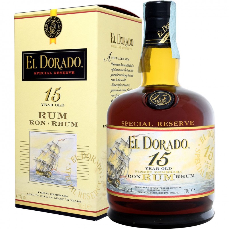 Il Rum El Dorado 15 Anni è un rum premium del Guyana Ha un colore ambrato scuro e un aroma intenso con note di caramello, vaniglia e frutta secca Al palato è morbido e complesso, con un sapore di caramello, cioccolato fondente e spezie dolci Il Rum El Dorado 15 Anni è stato invecchiato per 15 anni in botti di rovere, il che gli conferisce una maturità e una profondità uniche Questo rum si presta bene per essere gustato da solo o in cocktail sofisticati come il Rum Old Fashioned o il Rum Manhattan.
