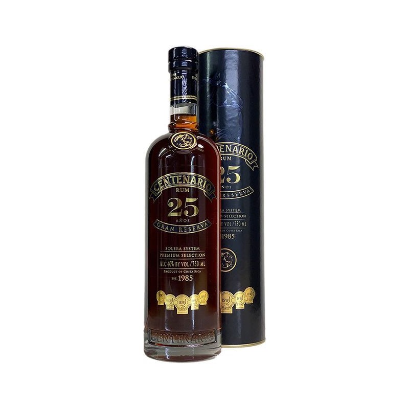 Rum Centenario 25 Años Gran Reserva Solera è un rum premium del Costa Rica, prodotto con un metodo di invecchiamento Solera che combina rum affinati fino a 25 anni Nasce da melassa di alta qualità e matura lentamente in botti di rovere che hanno contenuto precedentemente whisky e bourbon, conferendo al distillato eleganza e complessità Il profilo aromatico è ricco e vellutato, con note di caramello, miele, vaniglia, frutta secca, legno dolce e un accenno di cioccolato Al palato risulta rotondo, morbido e avvolgente, con una dolcezza armonica e tannini delicati dati dal lungo contatto con il legno La gradazione di 40% vol valorizza la sua piacevolezza e lo rende ideale per degustazioni pure Il finale è lungo, caldo e molto raffinato, perfetto per chi ama i rum morbidi e profondi.