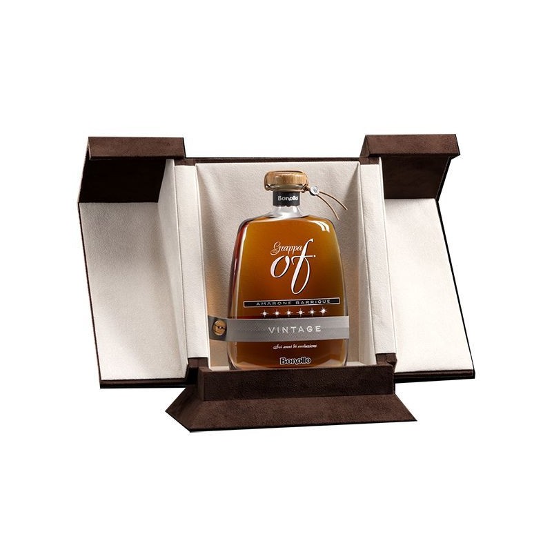 Il Cofanetto Grappa of Amarone Riserva Vintage 6 Stelle Bonollo è un set di grappe italiane di alta qualità, prodotte dalla distilleria Bonollo del Veneto Il cofanetto contiene diverse bottiglie di Grappa Amarone Riserva Vintage 6 Stelle, che è una delle espressioni più pregiati della distilleria.La Grappa Amarone Riserva Vintage 6 Stelle è ottenuta dalla distillazione delle vinacce dell Amarone, un celebre vino rosso italiano prodotto nella regione della Valpolicella La scelta di vinacce di alta qualità e il processo di invecchiamento in botti di legno conferiscono a questa grappa un sapore raffinato e complesso, con note di frutta secca, spezie e legno invecchiato.Il cofanetto è una presentazione elegante e ideale per le occasioni speciali o come regalo per gli appassionati di grappe e distillati di qualità È un autentico omaggio alla tradizione enologica e alla maestria italiana nel campo dei distillati.