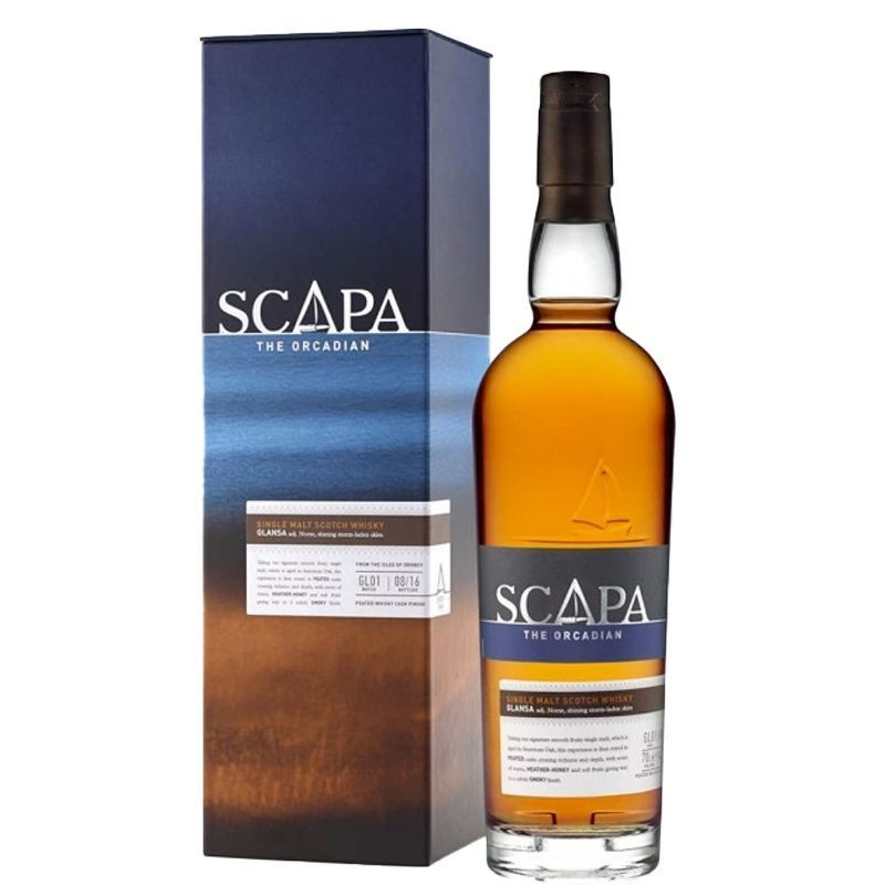 Il Whisky Single Malt Glansa è uno dei due distillati di punta di Scapa, importante e storico nome sito a Kirkwall, su Mainland, l isola più grande delle Orcadi, arcipelago scozzese nell estremo nord della Gran Bretagna Proprio la posizione geografica rende questo territorio remoto ma molto adatto per produrre whisky.Glansa in norreno, antica lingua germanica, significa cieli carichi di tempesta e indica il contrasto tra la quiete della distilleria e l ambiente tempestoso che la circonda.The Orcadian Glansa è un Single Malt Scotch Whisky che matura in botti di primo riempimento ex bourbon, per essere poi affinato in botti contenenti precedentemente whisky torbato, aumentandone la ricchezza e la profondità Gustoso e morbido al palato, conferma i sentori olfattivi con un finale affumicato e un timido accenno di torba.Di colore giallo ambrato intenso, al naso è chiaramente distinguibile l impronta non torbata, perché si hanno ben presenti i sentori più freschi e leggeri di miele e frutta secca, caramello e accenni di frutta esotica In bocca è morbido e cremoso, sempre con note fruttate e dolci che ne rendono indimenticabile l aroma.