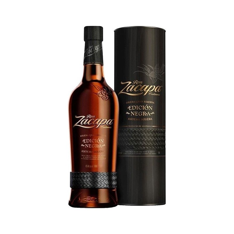 Rum Zacapa Edición Negra è un rum guatemalteco ottenuto da miele vergine di canna e invecchiato a oltre 2.300 metri, dove il clima fresco rallenta l evoluzione aromatica Matura con Metodo Solera in botti di whisky, vini pregiati e legni pesantemente tostati, che gli donano un carattere più scuro e affumicato rispetto allo Zacapa 23.Al naso presenta cacao, zucchero bruciato, frutta secca, scorza d arancia e una nota fumé elegante Al palato è pieno, caldo e avvolgente, con cioccolato fondente, miele scuro, prugna e caffè tostato Il finale è lungo, con ritorni di vaniglia e caramello bruciato.Con una gradazione di 43 gradi, è ideale da gustare liscio o con una sfera di ghiaccio Perfetto come rum da meditazione, si abbina bene a cioccolato fondente, formaggi erborinati e sigari aromatici.