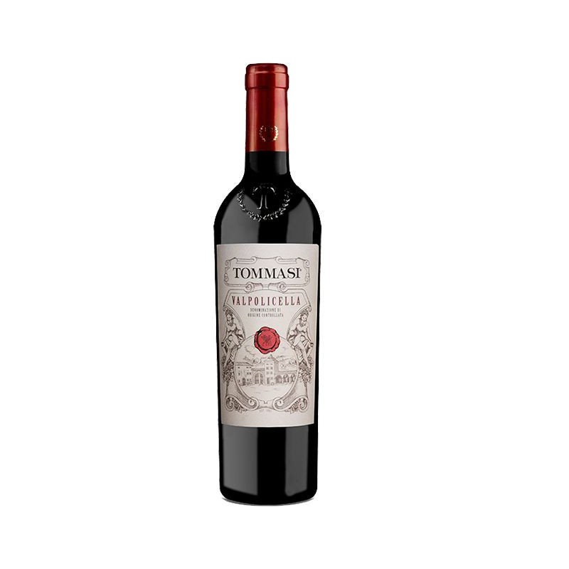Il Valpolicella DOC di Tommasi è un vino rosso rubino intenso e trasparente, con profumi freschi e fruttati di ciliegia e fragola; al palato è fragrante, equilibrato e persistente, con una gradazione alcolica del 12% Si abbina perfettamente a primi piatti a base di carne o funghi, carni bianche e formaggi giovani o di media stagionatura Si consiglia di servirlo a una temperatura di 14-16°C.