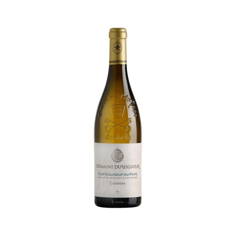 Il Châteauneuf-du-Pape Blanc "Catarina" Duseigneur è un bianco elegante e luminoso, capace di unire ricchezza aromatica e finezza minerale Al naso si apre con profumi intensi di pesca bianca, pera, agrumi maturi e fiori gialli, arricchiti da delicate note di miele, erbe provenzali e una sottile sfumatura speziata Il sorso è avvolgente, armonioso e vellutato, sostenuto da una freschezza equilibrata che dona slancio e grande precisione La struttura è piena ma perfettamente bilanciata, con una sapidità elegante che accompagna un finale lungo, complesso e finemente aromatico Ideale con pesce, crostacei, carni bianche, risotti e cucina raffinata Un Châteauneuf-du-Pape Blanc di grande classe, ricco e profondamente mediterraneo.